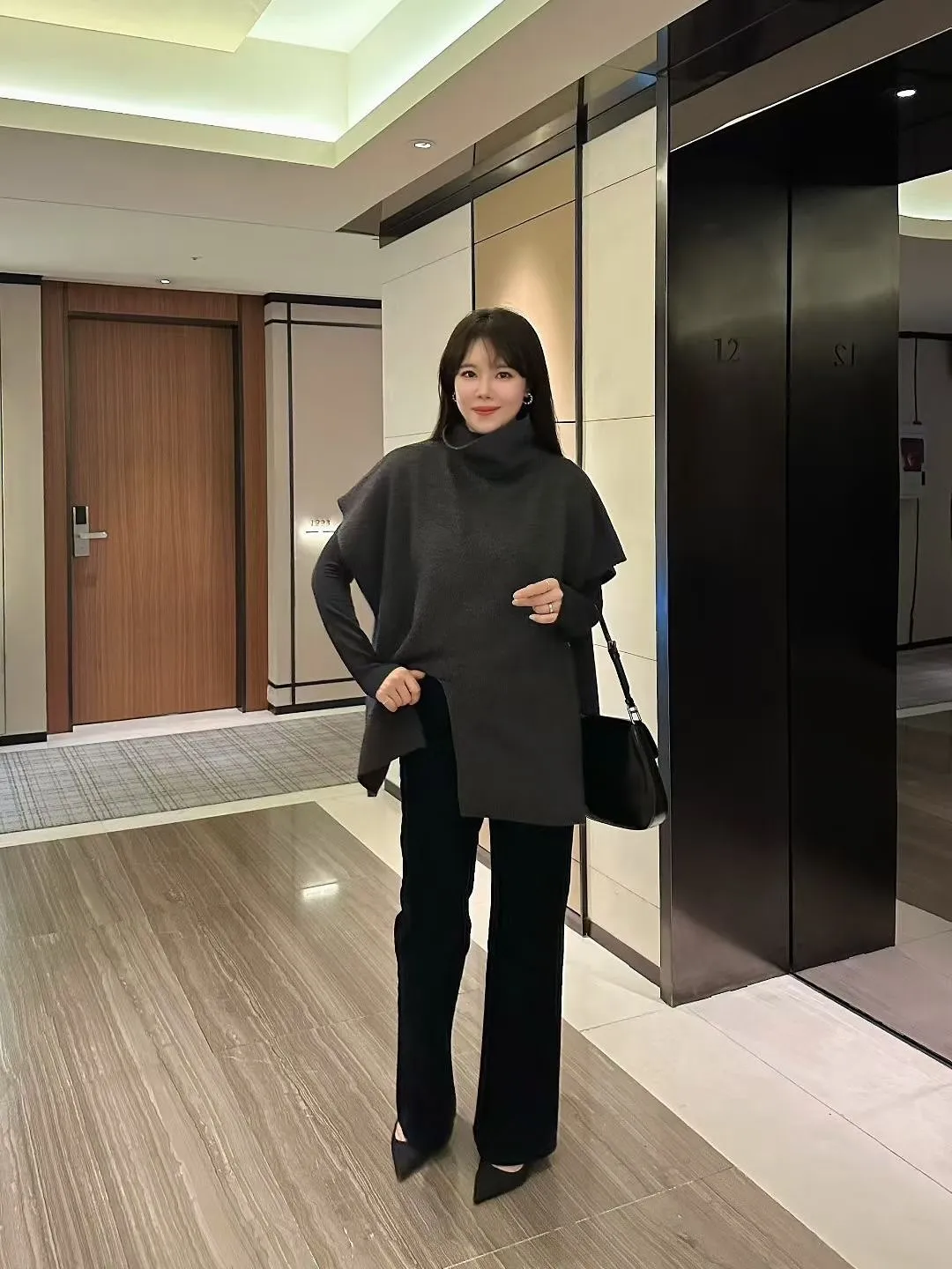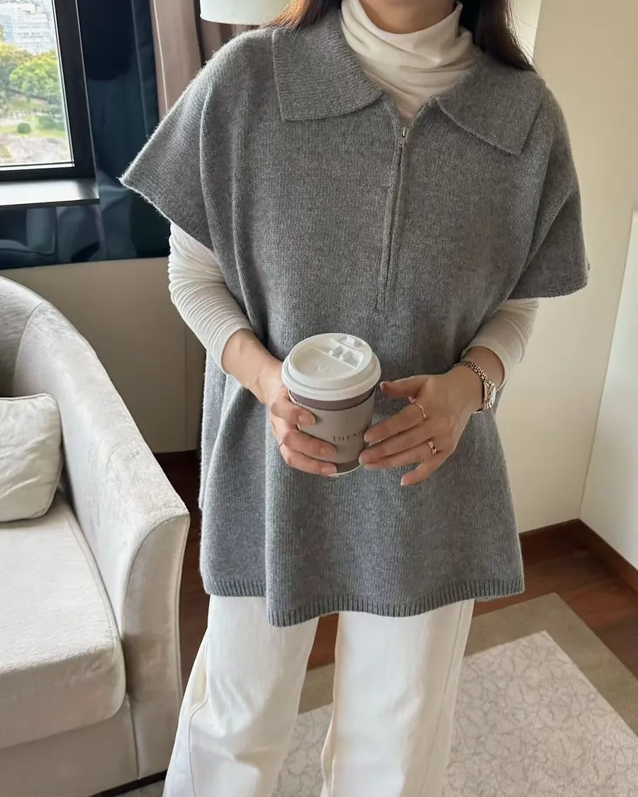 雙面穿造型上衣|高CP質必收款 一件兩穿,風格自由切換 正面是慵懶的高領披肩造型,簡約俐落中帶點時髦氣場; 反面則是拉鍊領設計,微開領瞬間展現不同氛圍~ 不論怎麼穿都很有型,實穿度滿分 厚薄適中,單穿或內搭外套都很合適, 側邊開衩剪裁修飾身形,讓整體比例更顯修長 顏色沈穩百搭,日常通勤、聚餐出門都完美駕馭。 穿上它,質感與氣勢一次擁有。 #米媞妍專屬於你
