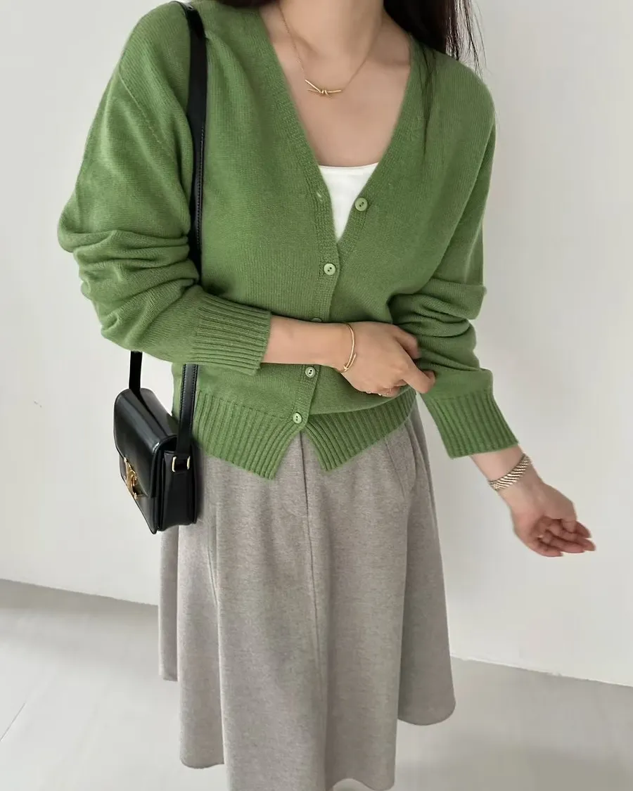 這款開襟衫採用細緻柔軟的毛料,輕盈不厚重,保暖又不悶熱。